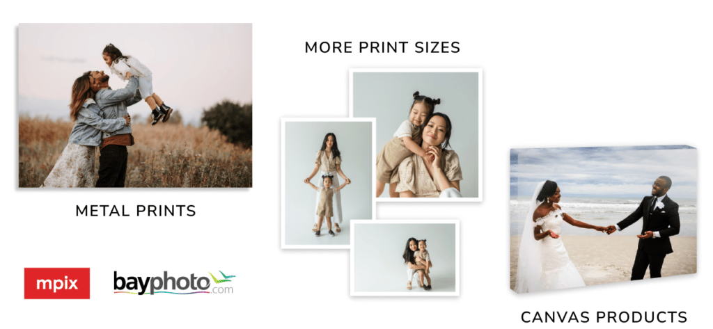We’ve added metal prints, canvas products and more print sizes from our integrated lab partners, Mpix and Bay Photo. Fulfillment from our partner labs is seamless. In a few clicks, your clients can purchase items, the order is sent to the lab and the products arrive right at your client’s doorstep!