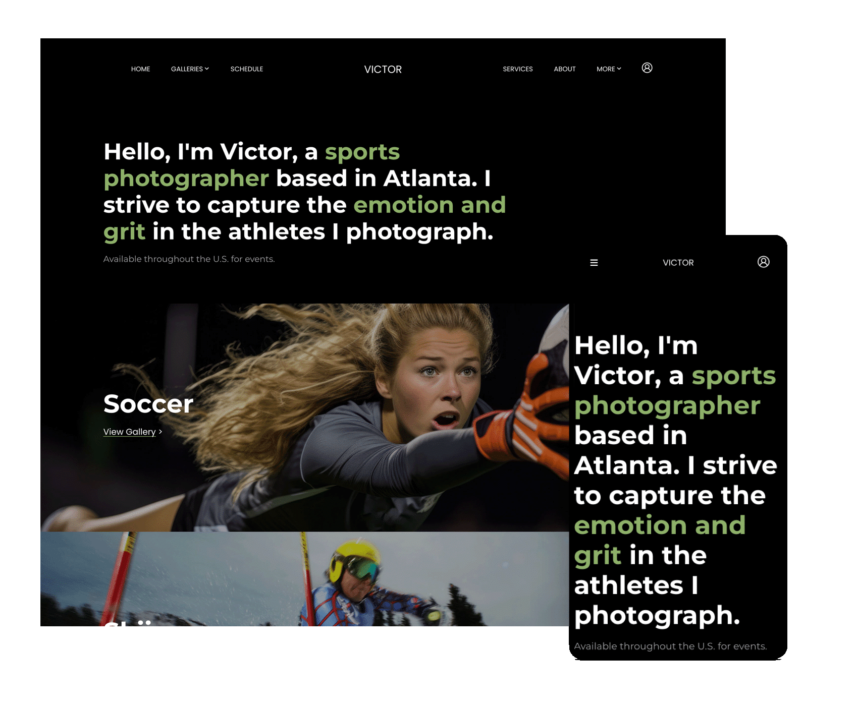 Once you’re ready to give your sports photography business the professional home it needs–a website–you’ll be faced with the next step; choosing a design for your new online portfolio. To help you on your path to creating a mobile-friendly website that not only includes workflows to save you time, but makes it easy for your customers to navigate–and shop!–we’ve rounded up twelve portfolios with fresh ideas for your own sports portfolio website.