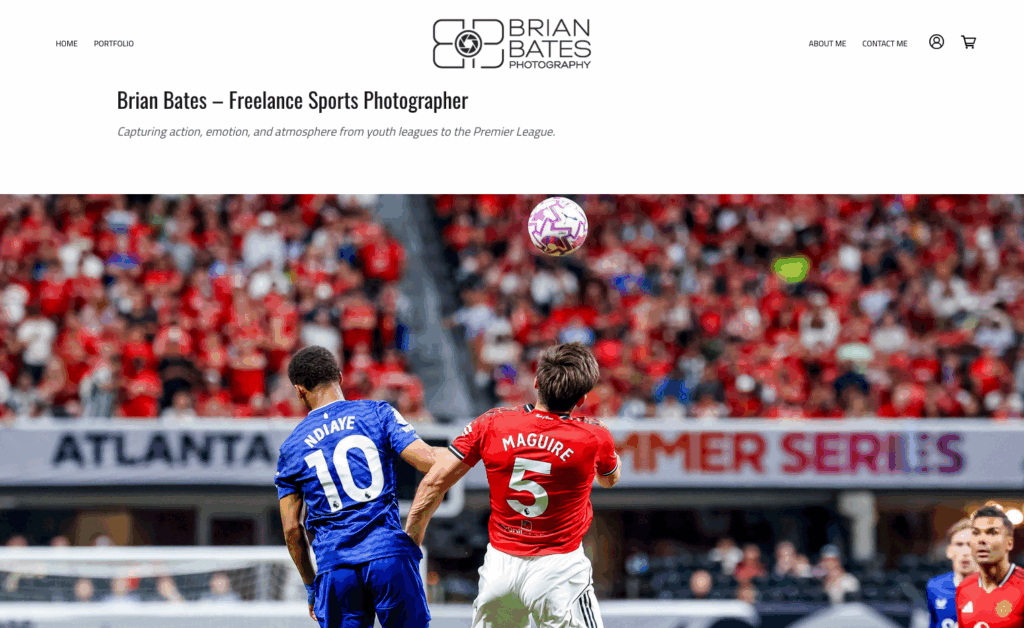 Once you’re ready to give your sports photography business the professional home it needs–a website–you’ll be faced with the next step; choosing a design for your new online portfolio. With so many options, it can be hard to decide the best way to showcase your images and unique brand. Even when switching from another website platform, it can be challenging to figure out which parts of your site truly tell your story and serve your customers, and which parts are just a distraction–especially when shooting volume photography jobs like Team & Individual photos. To help you on your path to creating a mobile-friendly website that not only includes workflows to save you time, but makes it easy for your customers to navigate–and shop!–we’ve rounded up twelve portfolios with fresh ideas for your own sports portfolio website.